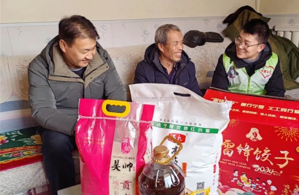 2024-02-011月8日上午,宁夏义工志愿服务联合会义工志愿者一行走进西夏区同阳新村,为这个移民村的20名困难老党员送去了“雷锋饺子”爱心大礼包和节前的暖心慰问