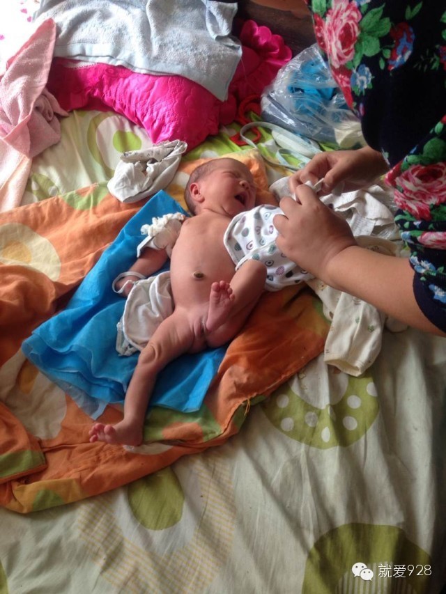 记者雁寒给孩子喂饱奶,擦洗干净满是屎尿的小屁股,重新给裹上衣服。家里其实真的没什么衣服,连干净的床单被子都没有,两个小婴儿,只能拿最简陋的单子包着,放在堆满了破旧杂物的小床上。