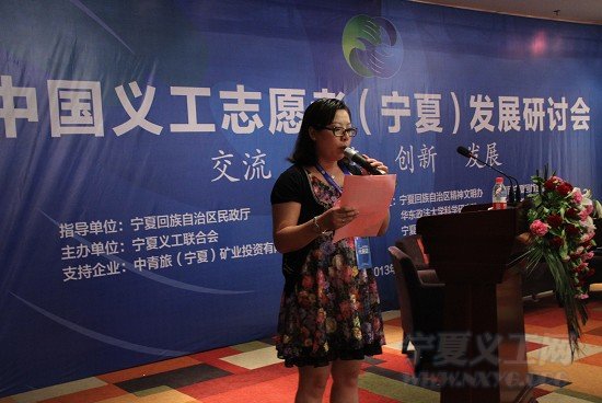 广州市义务工作者联合会副秘书长邓冰蓉代表四家机构发布《银川宣言》 8月16日,为期两天的由宁夏义工联合会主办的中国义工志愿者(宁夏)发