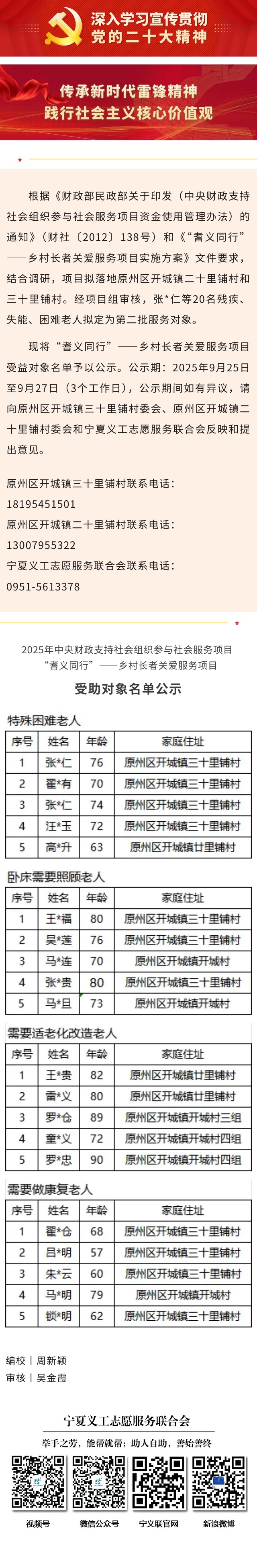2025年中央财政支持社会组织参与社会服务项目 “耆义同行”——乡村长者关爱服务项目受助对象名单公示(第二批)