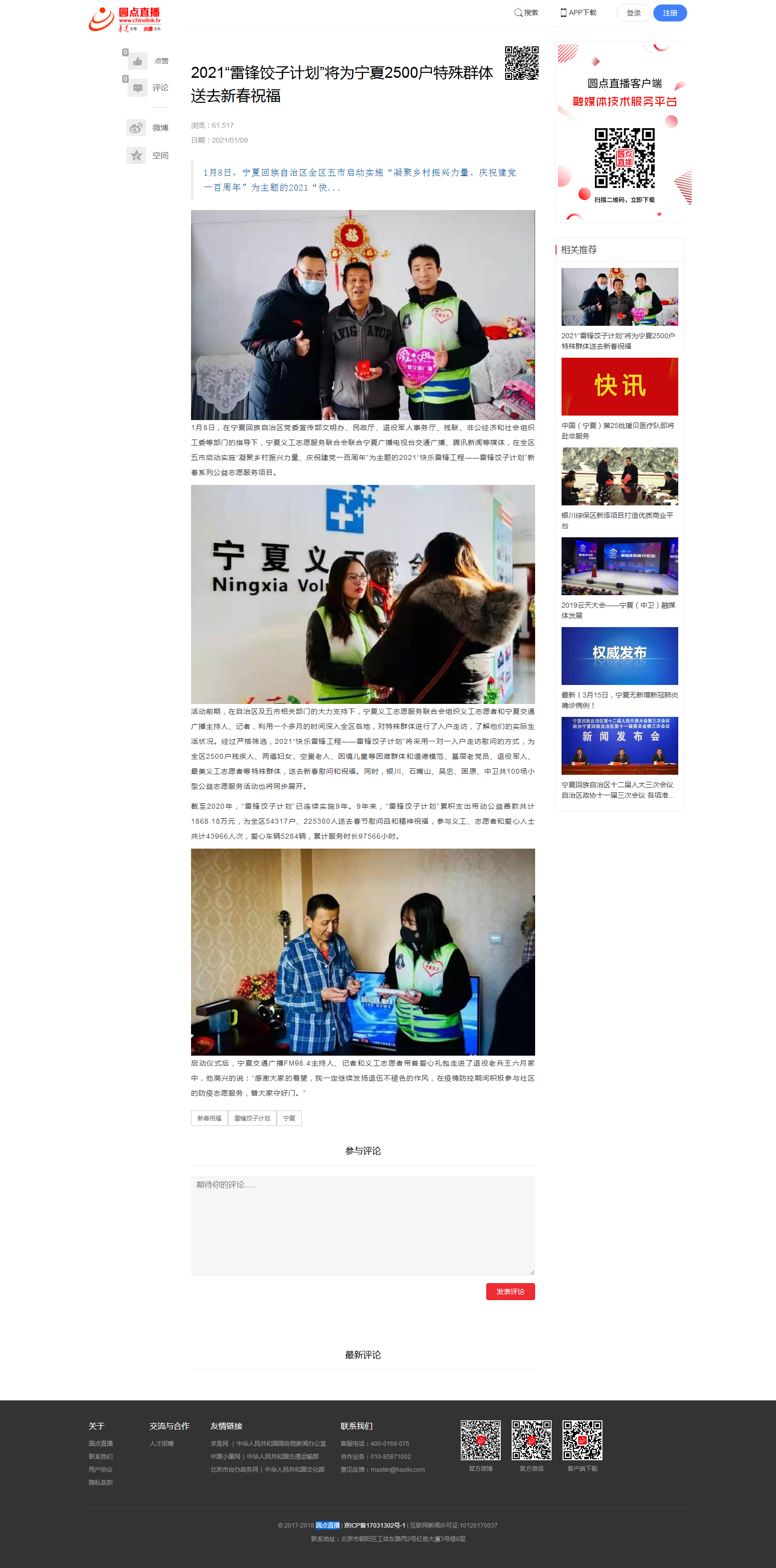 人民网——人民资讯:2021年“雷锋饺子计划”将为宁夏2500户困难家庭送祝福